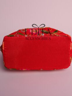 A compact purse with detailed traditional embroidery.Comes with a magnetic closure for quick access.Perfect for storing money,