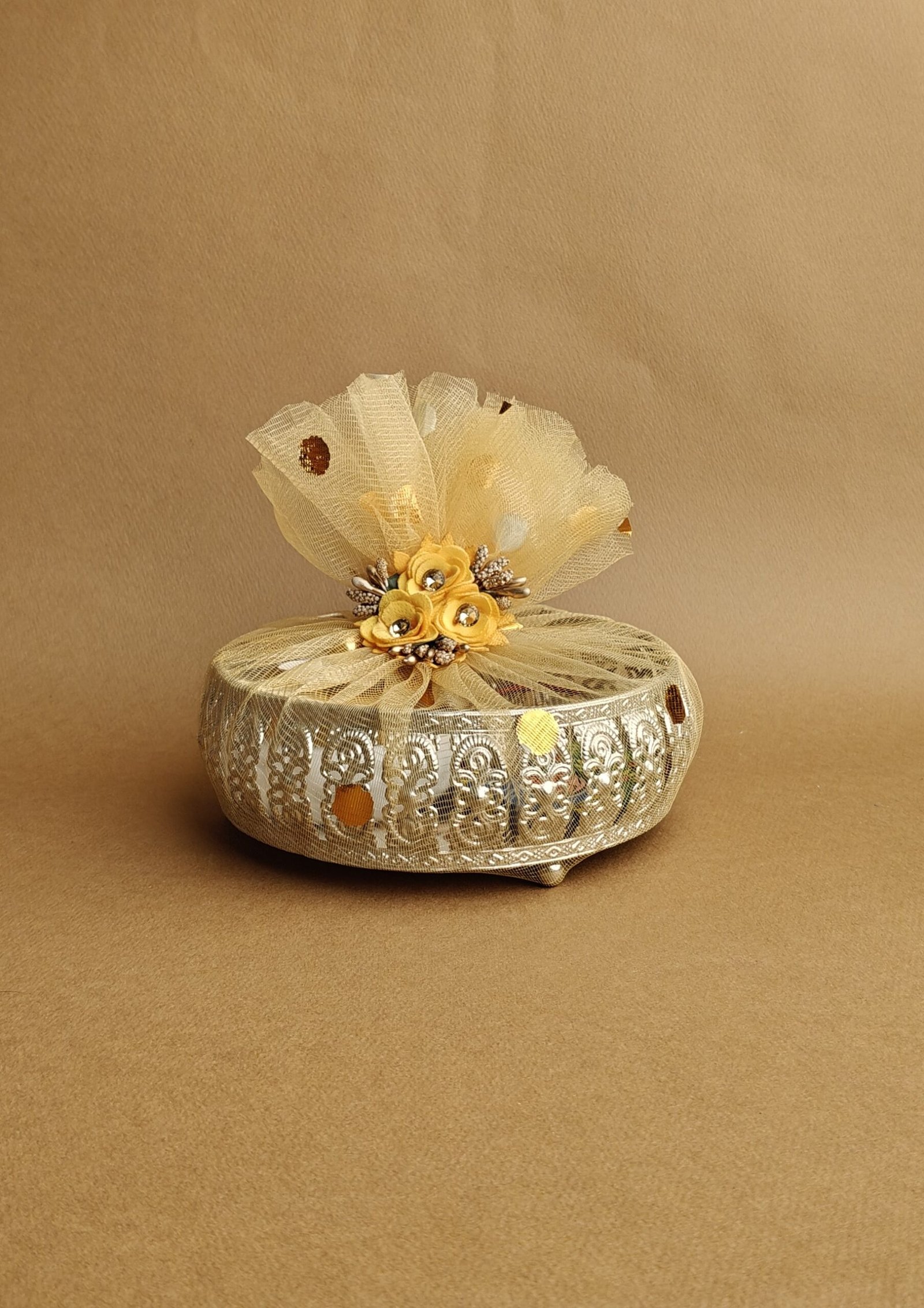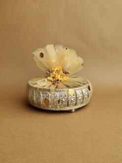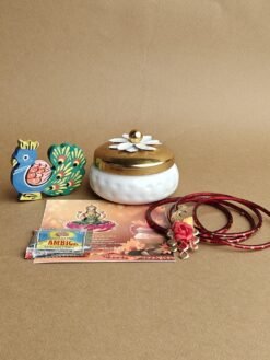 This exquisite hamper features a stunning German silver tray decorated with intricate peacock engravings. Perfect for festive gifting, weddings, and traditional ceremonies. Each piece reflects fine craftsmanship and cultural elegance. A luxurious way to celebrate special moments.