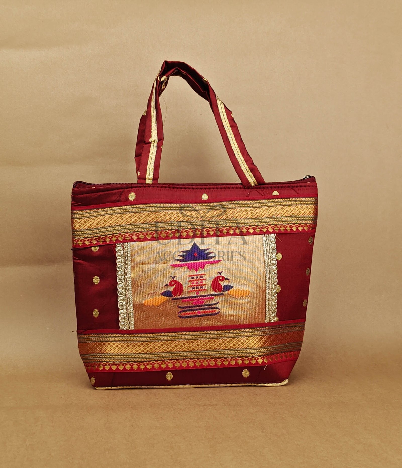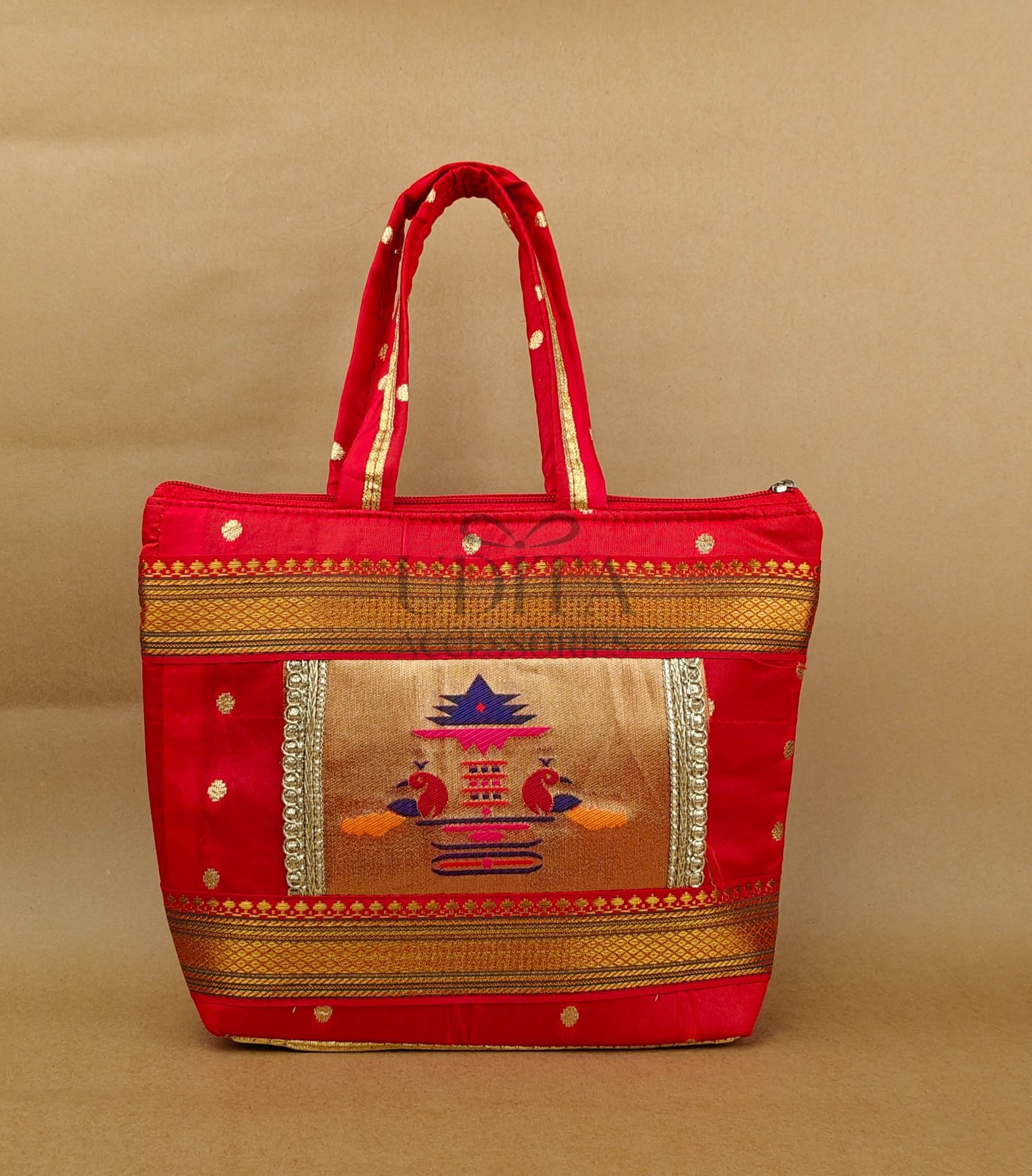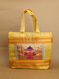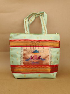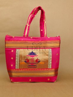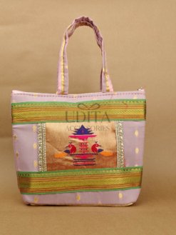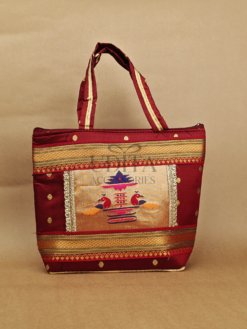A beautiful handbag featuring traditional Paithani motifs. Ideal for weddings, festivals, and everyday ethnic styling. Spacious and vibrant with premium craftsmanship. Perfect as a gifting choice.