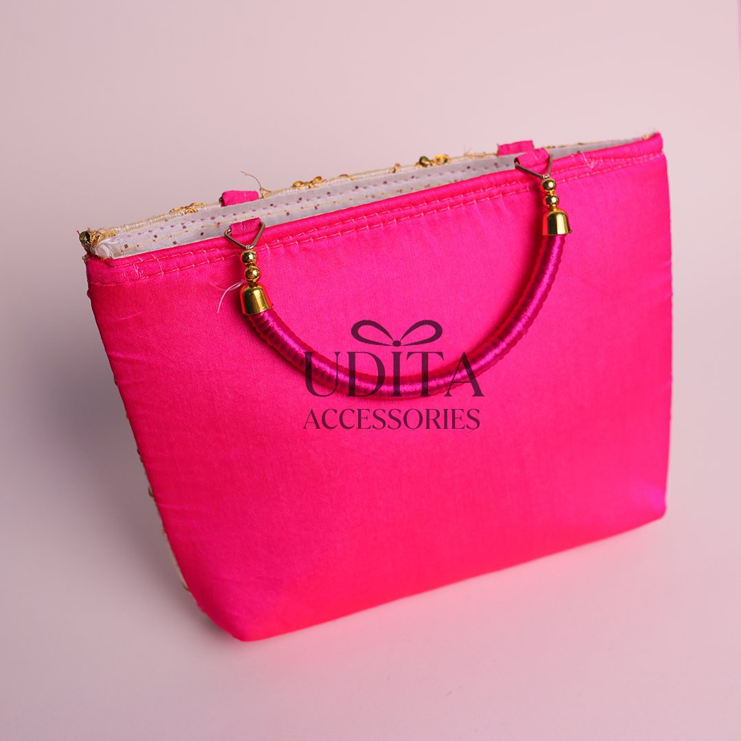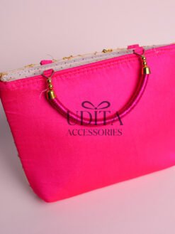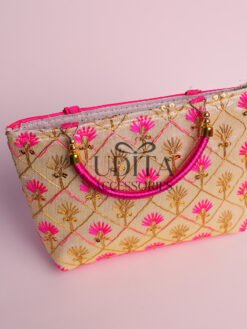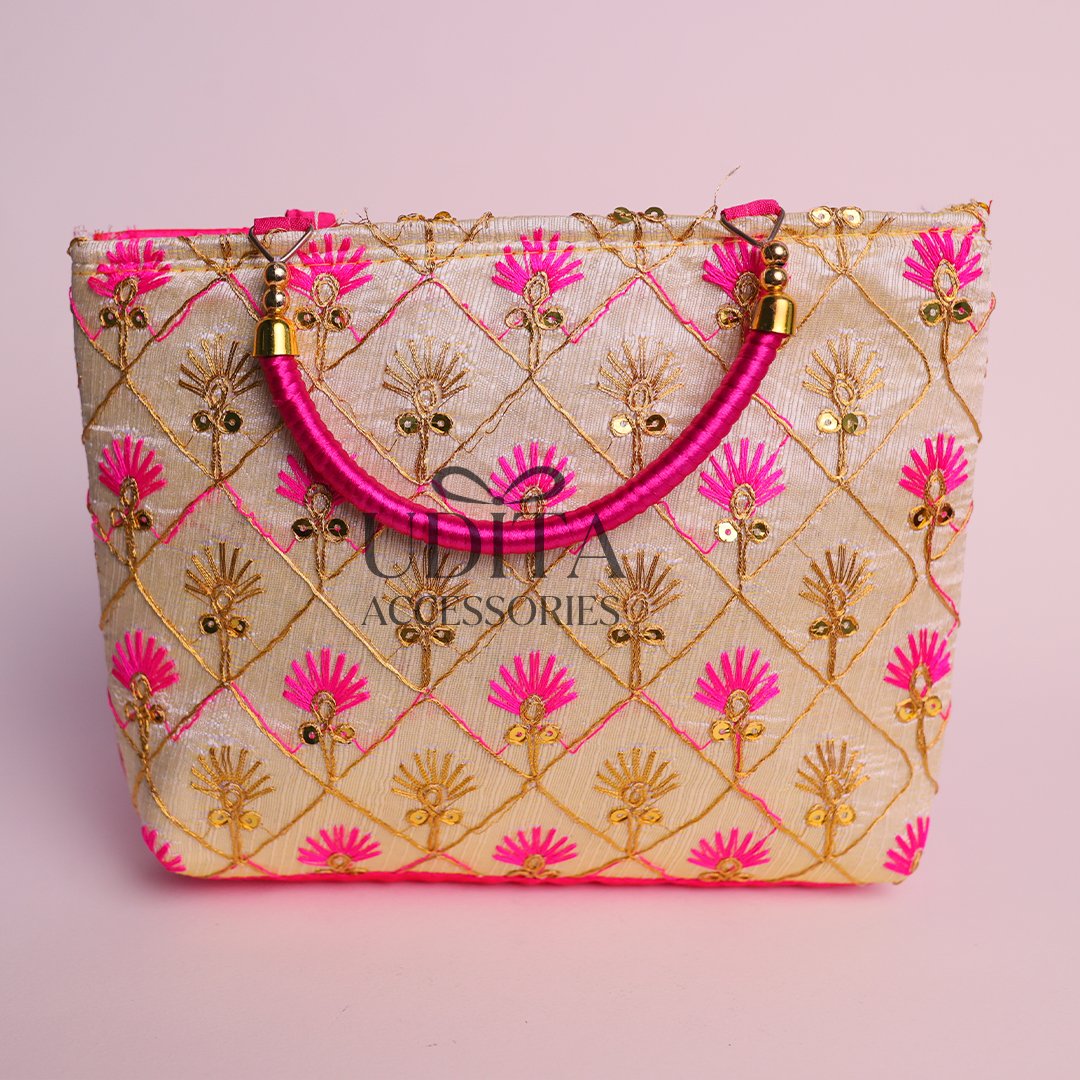 A stylish and durable half-white handbag with pink handles.Perfect for daily use, shopping, or gifting.Lightweight