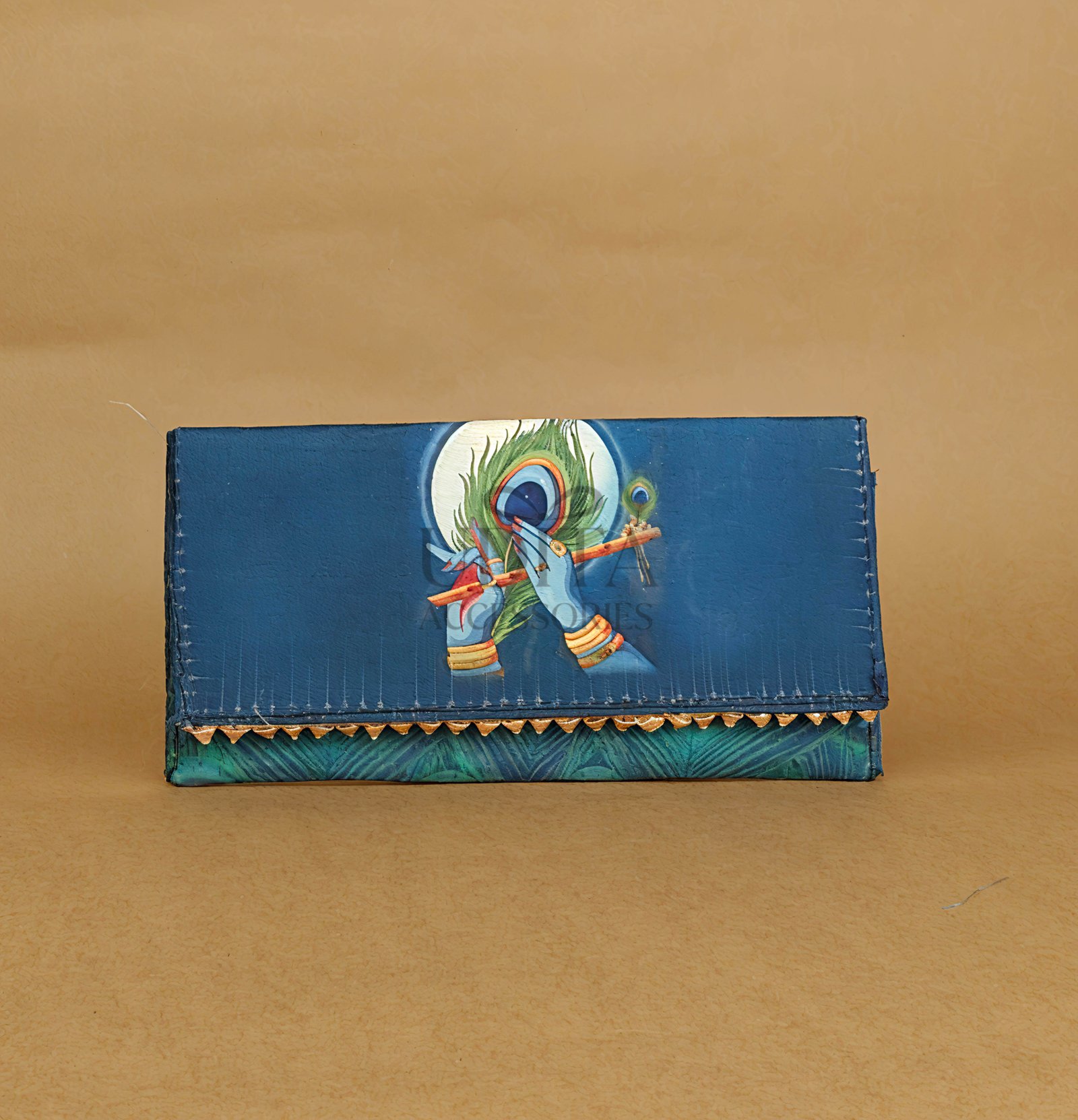 A devotional, artistic purse featuring Lord Krishna?s motif. Compact, stylish, and easy to carry. Perfect for gifting or daily use. Adds a spiritual touch to your accessories.