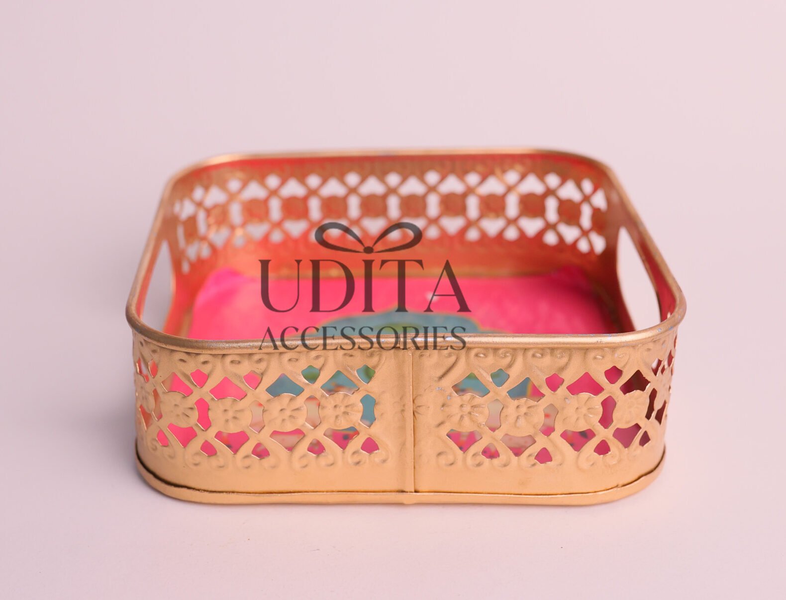 A beautiful tray for festive return gifts.
