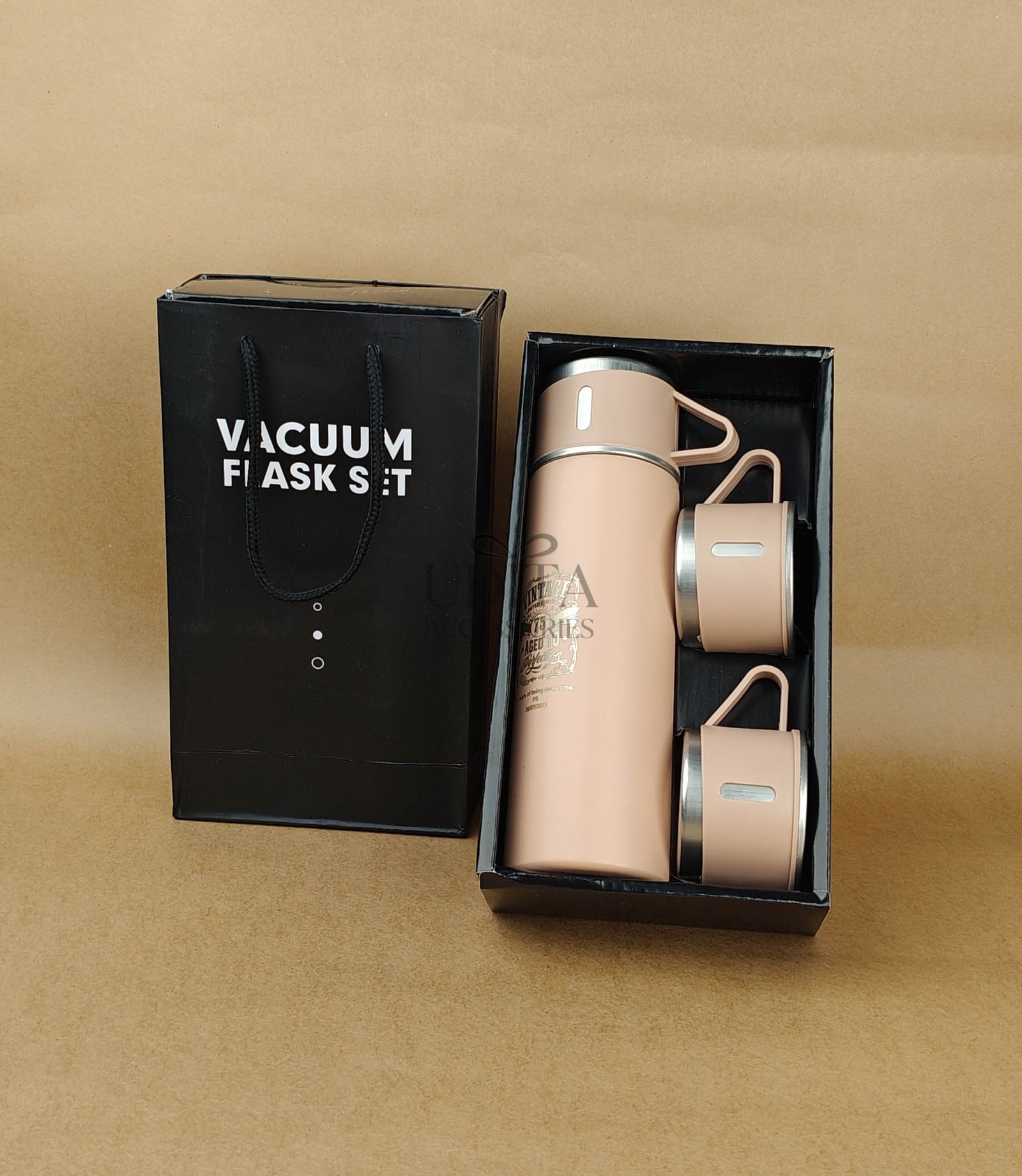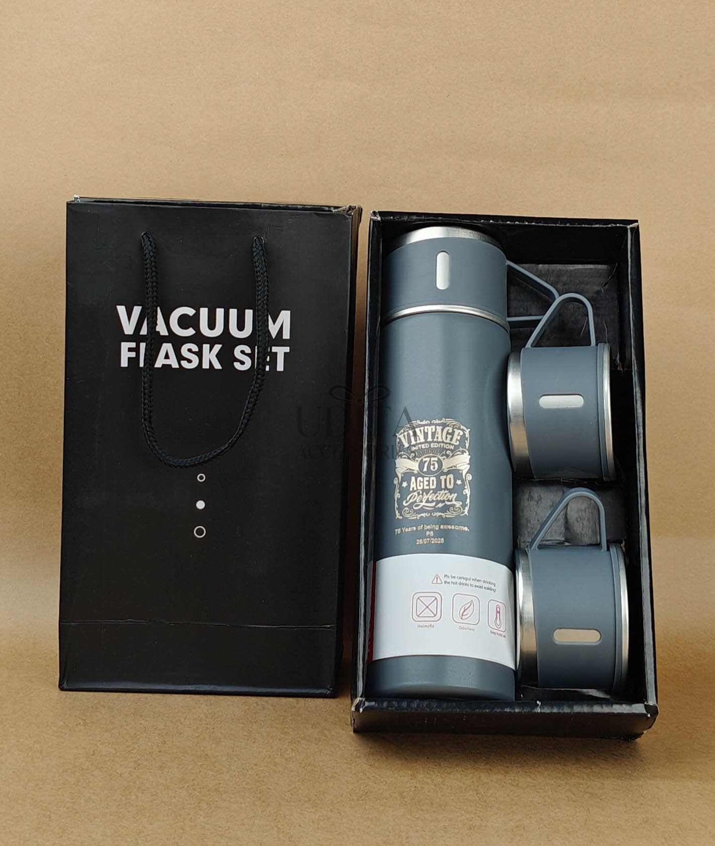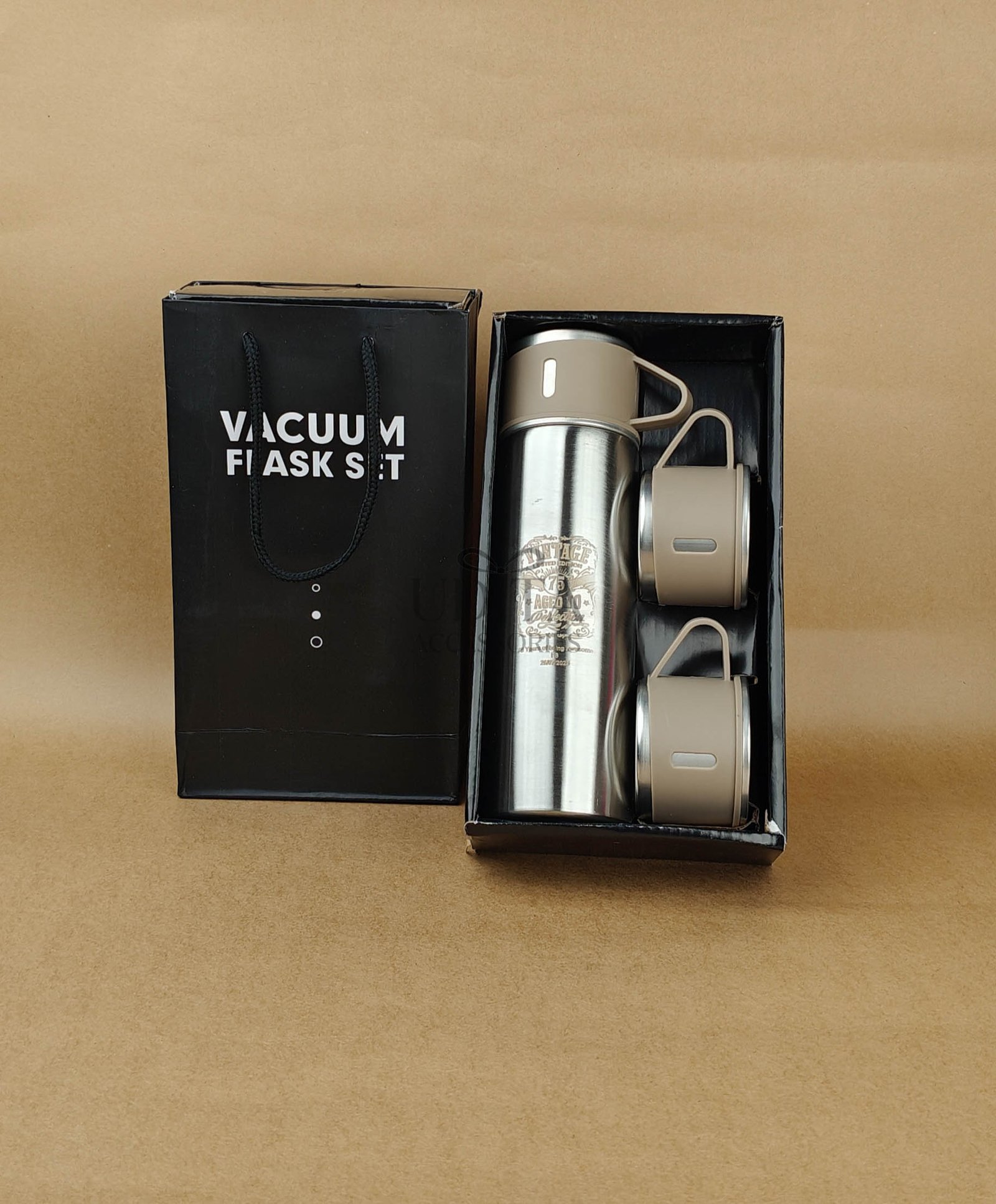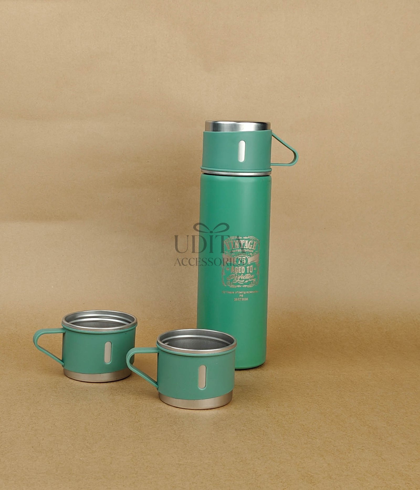 A premium insulated flask set designed to keep beverages hot or cold for hours. Ideal for office use, travel, or gifting. Durable, leak-proof design. A must-have utility accessory.