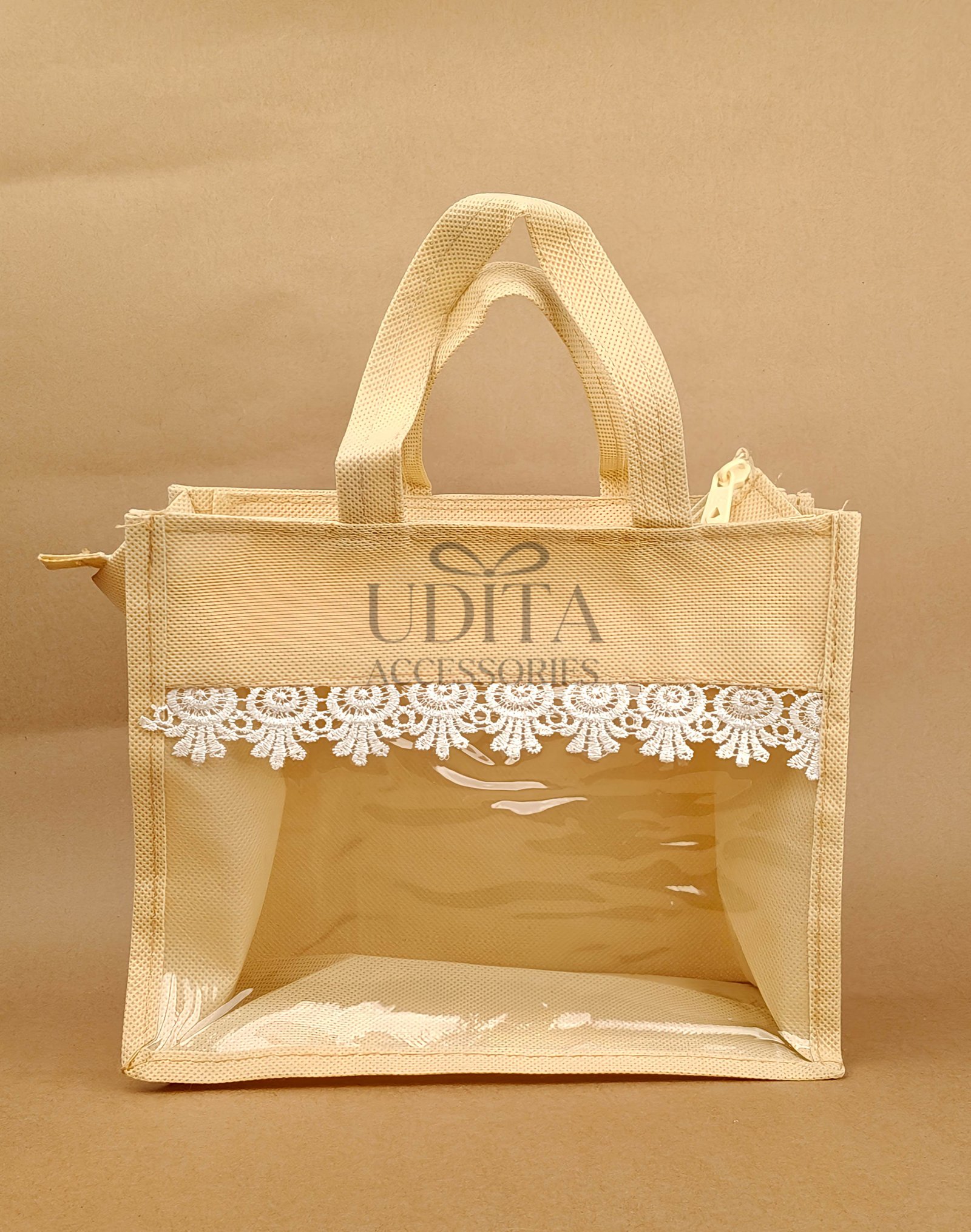 Eco-friendly jute bag with a transparent window to display gifts inside. Perfect for hampers, return gifts, and festive packaging. Sturdy, reusable, and elegant. Adds a natural and rustic charm to your gifting style.