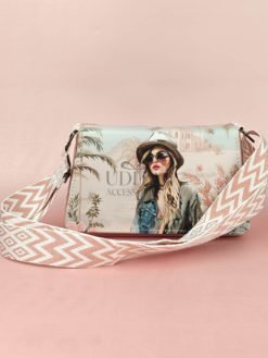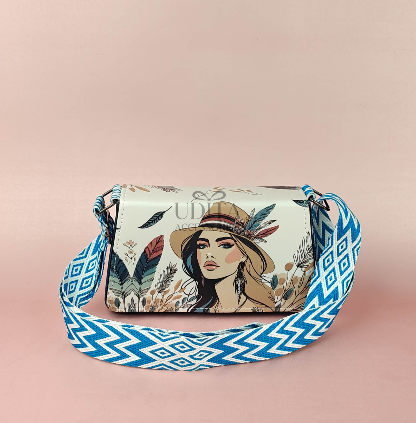 A fashionable sling bag with vibrant printed design. Lightweight and easy to carry for everyday use.
